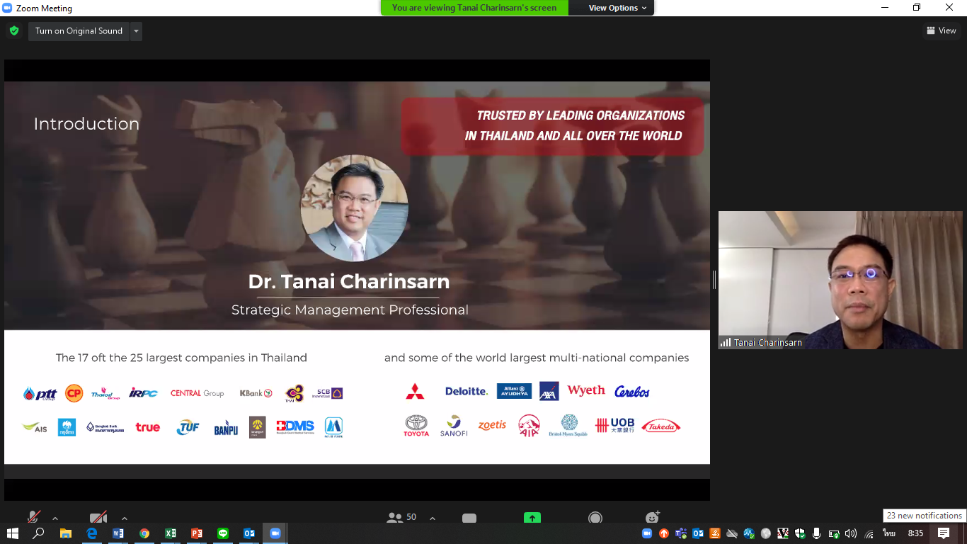 กรกฎาคม 20, 2021MBA PIM เรียนรู้ประสบการณ์จริงจาก professional ตัวจริง โดย ดร.สุรอรรถ ศุภจตุรัส Director of Innovation for Economy Department , National Economy Agency (NIA) ภาพบรรยากาศในห้องเรียนออนไลน์ โดย ดร.สุรอรร…