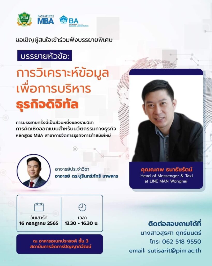 การบรรยายครั้งนี้เป็นส่วนหนึ่งของรายวิชาการจัดการธุรกิจดิจิทัล หลักสูตร MBA สถาบันการจัดการปัญญาภิวัฒน์